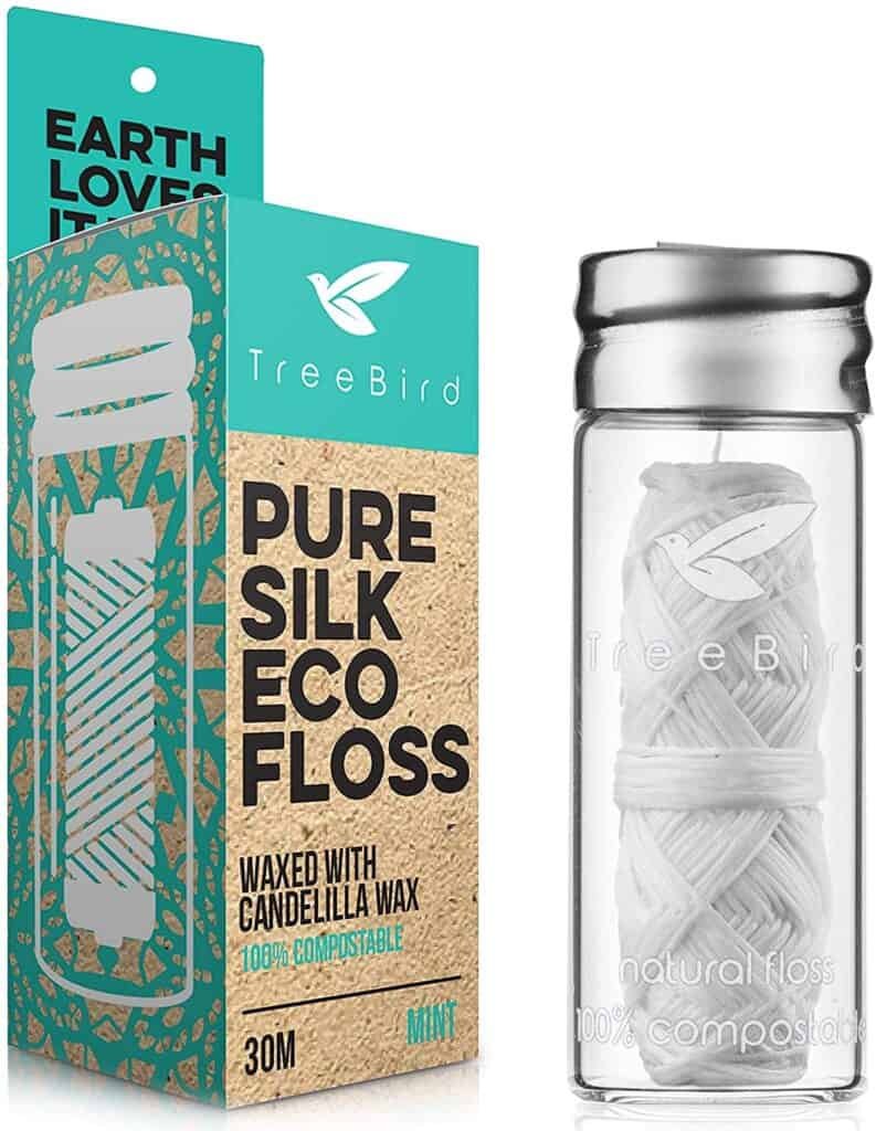 - EASILY REFILLABLE FLOSS HOLDER THAT LASTS FOR AGES – Our eco floss in a glass container is completely compostable and the glass holder is reusable so you don’t have to worry about buying new ones! Just find our TreeBird earth-friendly floss refills 2-pack right here on Amazon and hit add to cart!. After using the floss you can just throw it in your compost pile where it will naturally biodegrade so you don’t have to worry about creating unnecessary pollution.
